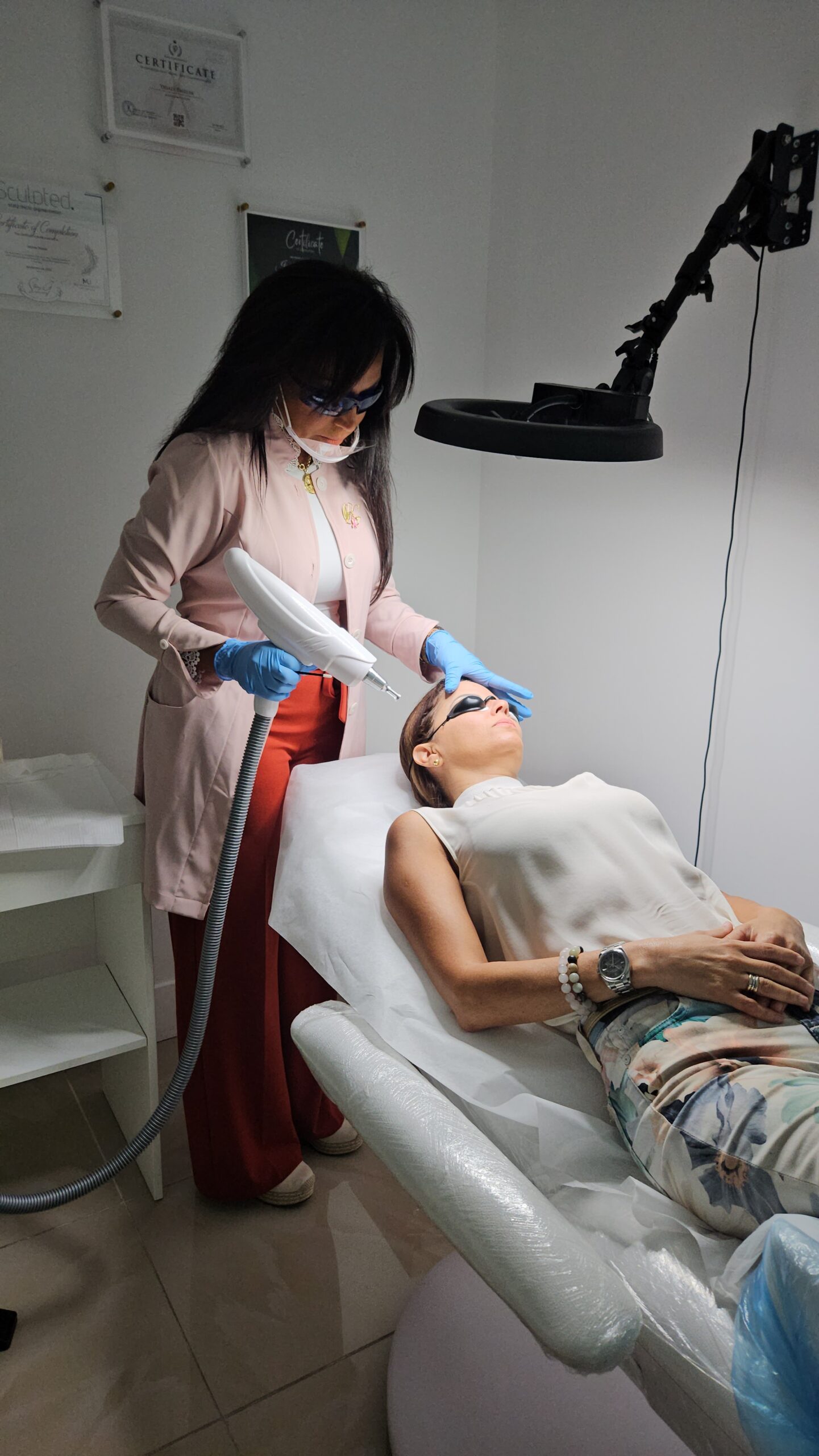- You’ll be given a pair of sunglasses to protect your eyes, and the doctor or technician will clean your skin and let it dry.