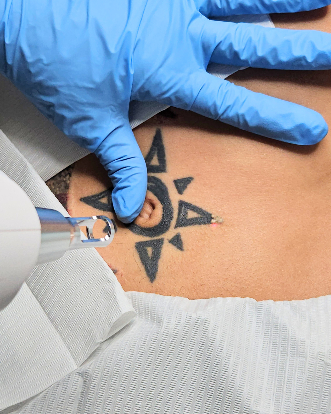 During this treatment, technicians use lasers to send out high-intensity pulses of light that target the ink inside your tattoo. As the ink absorbs these pulses of light, it begins to heat up. This heat makes the ink break into tiny pieces, which your immune system can then clear away. Your tattoo starts to fade as the ink goes away.